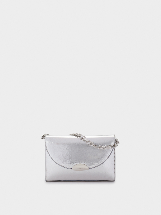 Bolso En Color Plata De Piel Es Mini Chic De Colgar Con Asa