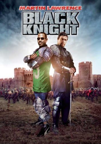 Se dice que el guion esta muy entretenido. Black Knight Martin Lawrence Marsha Thomason Tom Wilkinson (01) An underachiever (Martin Lawrence) in Los Angeles timetravels to 14thcentury England and battles an evil king. A commoner disguises himself as "The Black Knight" in order to reveal the identity of those trying to overthrow King Arthur He romps around the countryside jousting and foiling and thwarting the goals of Cushing and Troughton.
