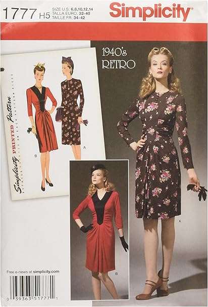 Simplicity 1777 H5 Patrones De Costura Para Vestidos Estilo Anos 40 De Mujer Tallas 32 A 40 Amazon Es Hogar
