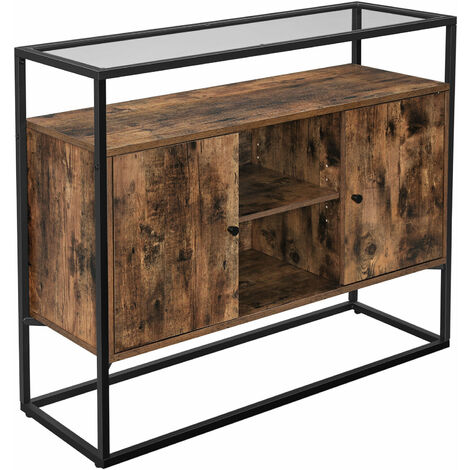 Vasagle Aparador Armario De Almacenamiento Tapa De Cristal Templado Compartimentos Abiertos Para Salon Pasillo Marco De