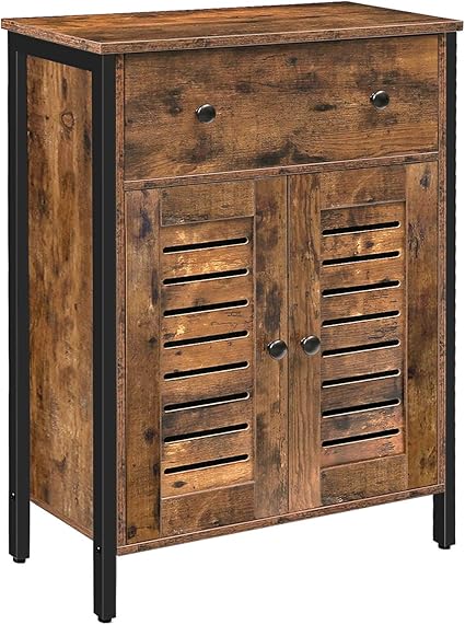 Hoobro Armario Aparador Armario De Almacenamiento De Estilo Industrial Armario Vertical Con Cajon Y Estante Ajustable Aparador Con Puertas De Lamas Dobles Para Dormitorios Pasillos Ebf25cw01 Amazon Es Hogar