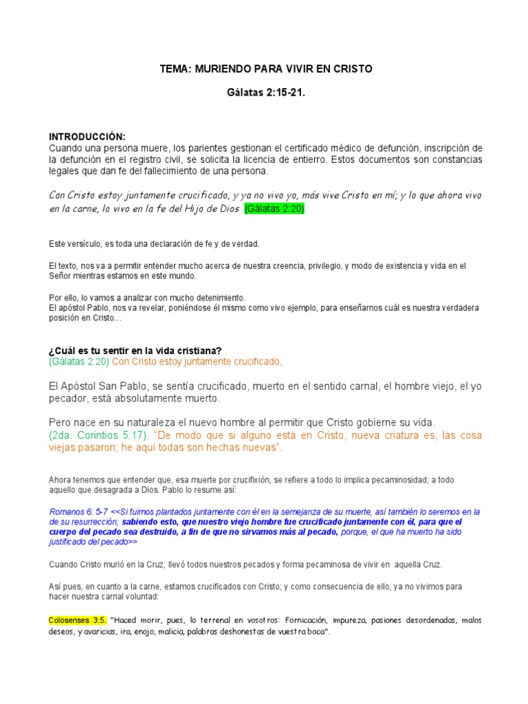 Tema Muriendo Para Vivir En Cristo Galatas 2 15 21 Crucifixion Pecado