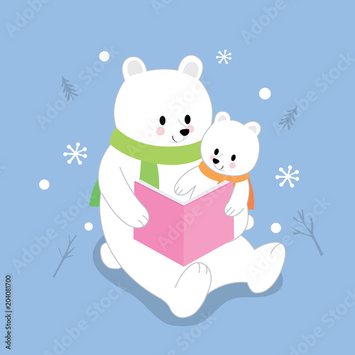 Cartoon Cute Mom And Baby Polar Bear Reading Book Vector Buy This Stock Vector And Explore Similar Vectors At Adobe Stock Adobe Stock