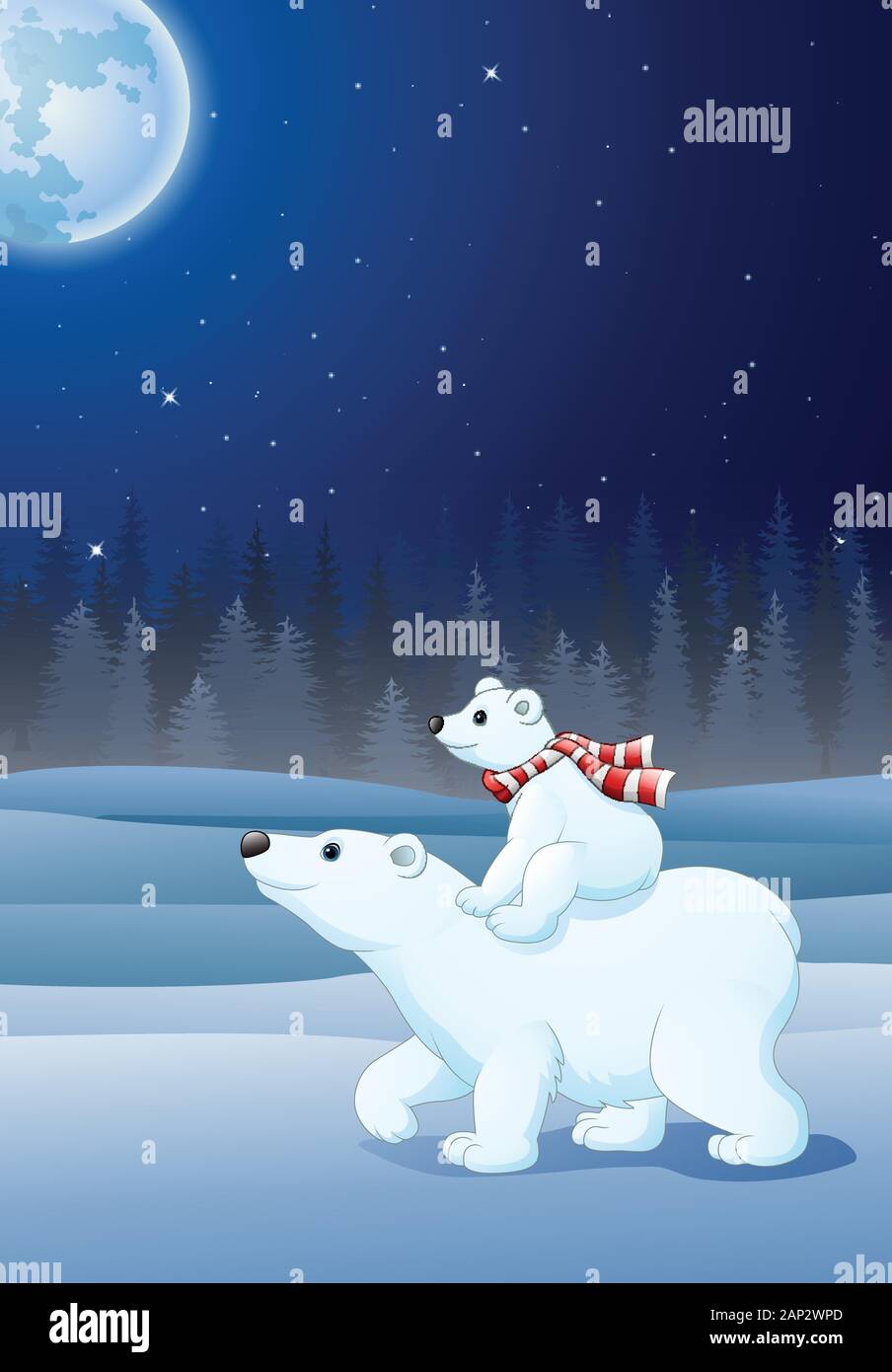 Download this stock vector Cartoon baby polar bear riding on her mother's back 2AP2WPD from Alamy's library of millions of high resolution stock photos, illustrations and vectors. Illustration about Polar Bear and baby cub in Christmas snow scene Christmas cute animal cartoon character Illustration of scene, snow, frozen. Coloring pages Polar bear will pleasantly surprise boys and girls and cheer up On the coloring page you will find your favorite cartoon characters and just the inhabitants of the North Pole Downloading or printing polar bear coloring pages is quick and easy just turn on the printer.