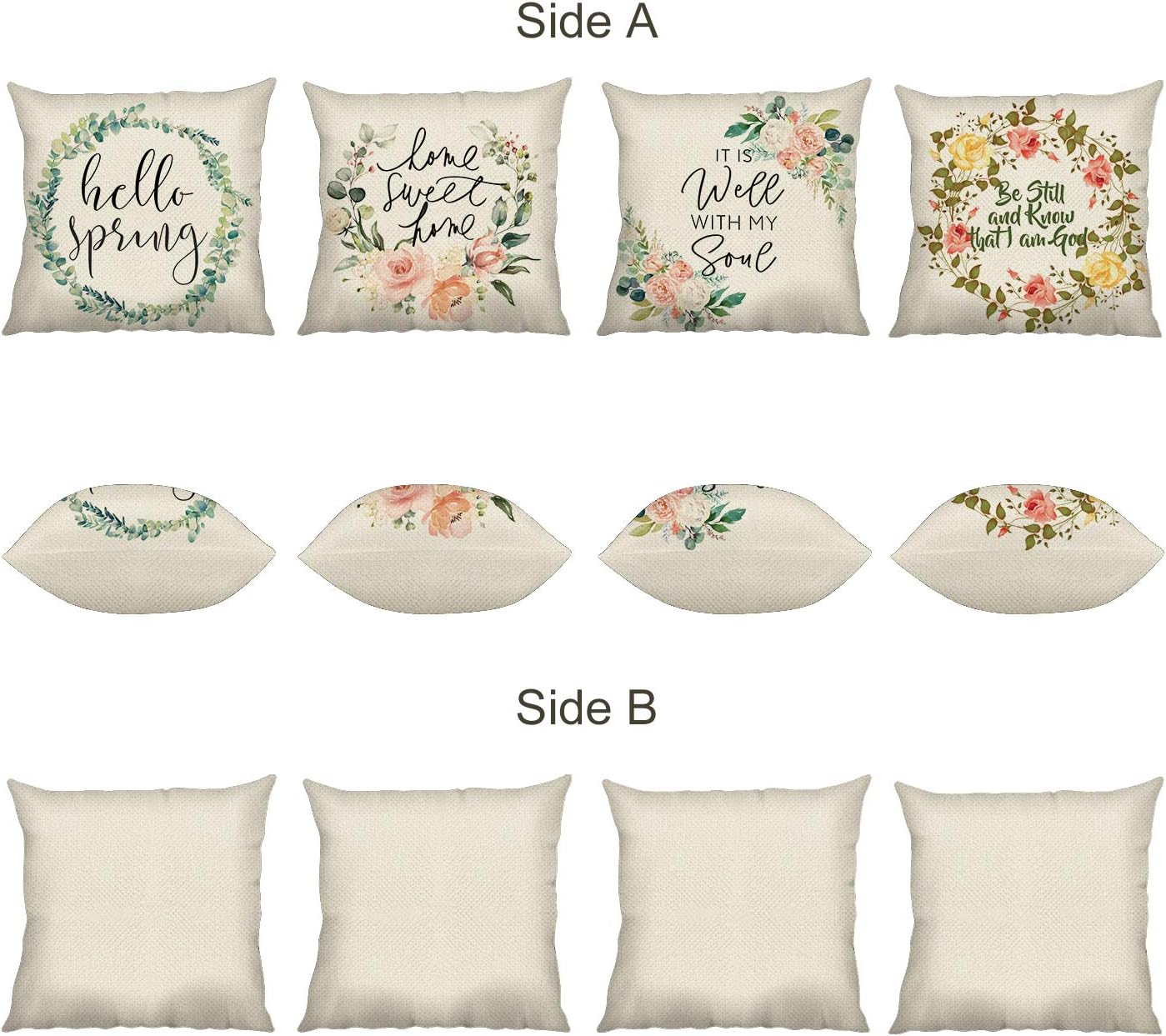 Bonhause Juego De 4 Funda De Cojin 45x45cm Frases Hello Spring Flores Algodon Lino Fundas De Almohada Para Cojines Decorativos Para Sofa Cama Coche Hogar Amazon Es Hogar