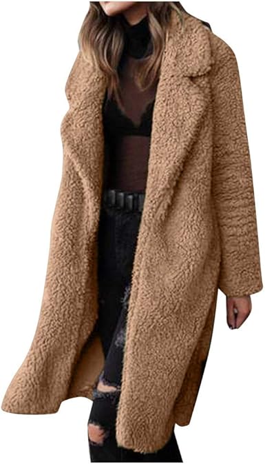 Polp Abrigo De Lana Mujer Invierno Largos Suelto Abrigos Mujer Rebajas Elegantes Tallas Grandes Calido Chaquetas De Felpa Con Boton Solapa Cuello Outerwear Amazon Es Ropa Y Accesorios