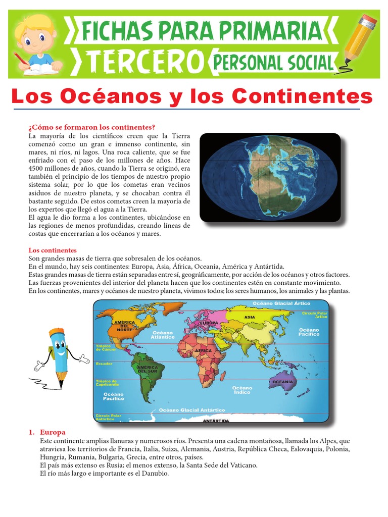 Ficha De Aprendizaje Continentes Y Oceanos Oceanos Oceano Pacifico