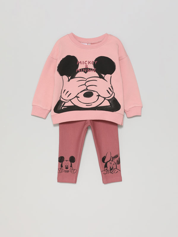 Conjunto Bebe Nina De Invierno De Malla Dibujos Y Camiseta Con Volante