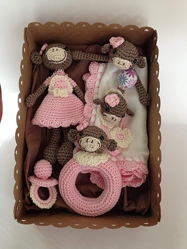 Canastilla De Recien Nacido De Monas Rosa Para Ninas Hecha A Mano Amazon Es Handmade