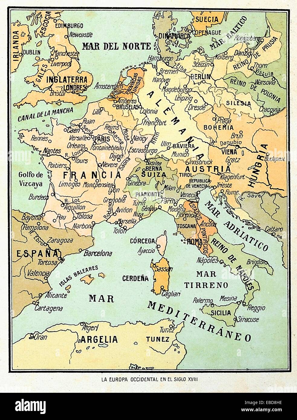 Mapa De Europa Occidental En El Siglo Xviii Fotografia De Stock Alamy
