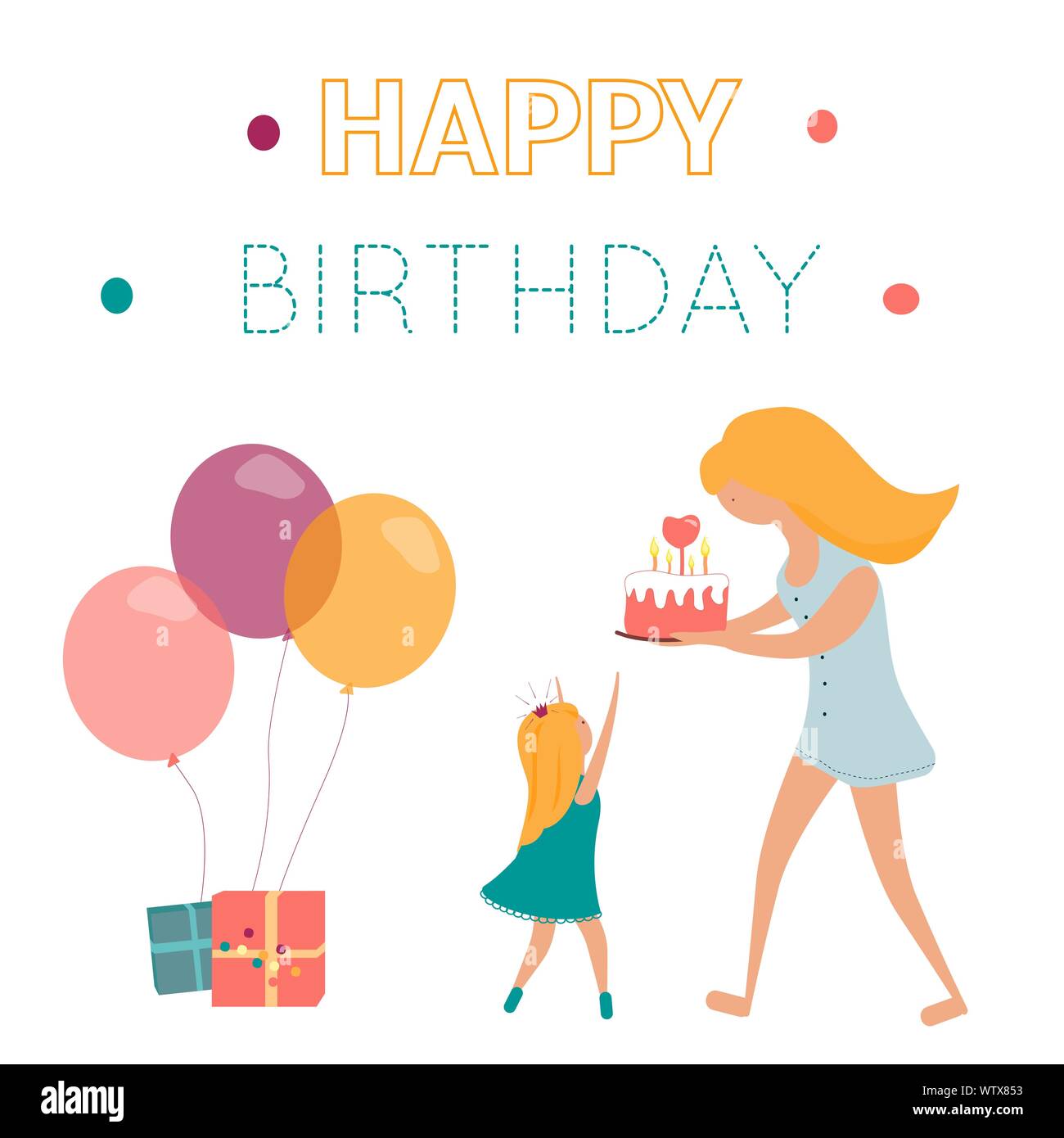 Tarjeta De Felicitacion De Cumpleanos Feliz Con Mama Hija Imagen Vector De Stock Alamy