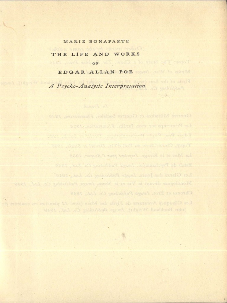 1949 Bonaparte Life And Works Of Edgar Allen Poe