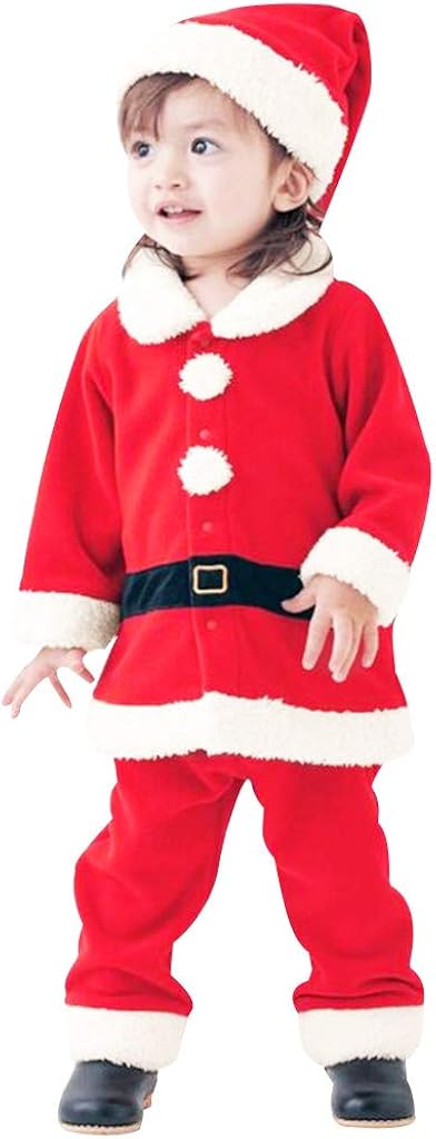 Amazon Com Disfraz De Navidad Para Ninos Y Ninas De Forro Polar Papa Noel Tops Abrigos Pantalones Conjunto De Gorras Clothing