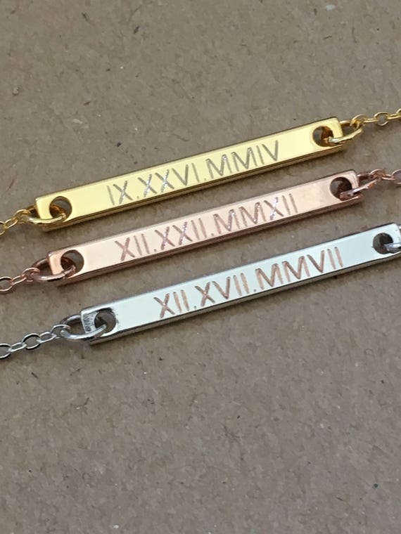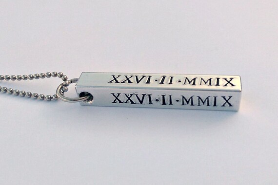 Boda Fecha Collar Collar Romano Numeral Bar Fecha Grabado Etsy