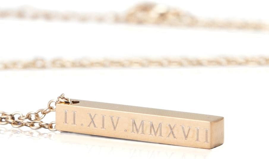 Xpium Personalizado Numeros Romanos Fecha Vertical Bar Collar Con Colgante Regalo Para Ella Amazon Es Joyeria