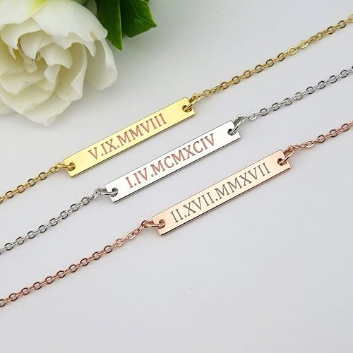 Collar Personalizado Con Numeros Romanos Collar Con Fecha Personalizable Collar Con Nombre Amazon Es Handmade