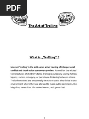 Text art Text art, also called ASCII art or keyboard art is a copypasteable digital age art form It's about making text pictures with text symbols As we now live in informational societies, I bet you've already encountered those ASCIIpainted pics somewhere on Internet. Sep 17, 11The Art of Trolling homepage This site is mainly a compilation of screenshots showing all kinds of pranks perpetrated on chatroullette, Omegle and Yahoo Answers People ask stupid questions and they get stupid answers in return It's fair game There's also a lot of bizarre and cretinous. What is a troll?.