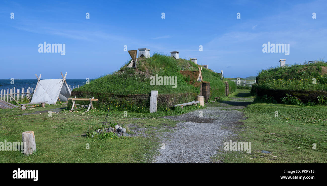 Edificios Reconstruidos En Un Sitio Arqueologico En La Punta Mas Septentrional De La Isla De Terranova En L Anse Aux Meadows Terranova Fotografia De Stock Alamy