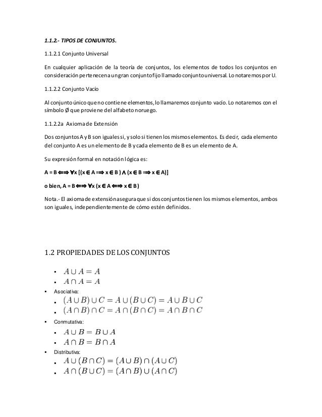 Si en la lista aparece un elemento repetido es como si sólo apareciese una vez. Existe un único conjunto vacío, ya que lo único que distingue a un conjunto son sus elementos. X 2 = 1} ∩ N = {1} complemento conjunto-teorético.