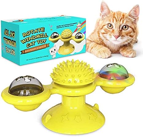 Nobranded Juguetes Interactivos Para Gatos Juguete De Molino De Viento Para Gato Juguete Giratorio Para Gatos Con Ventosa Cepillo Para El Cabello Accesorios Para Mascotas Juego Loco Amarillo Amazon Es Productos Para Mascotas