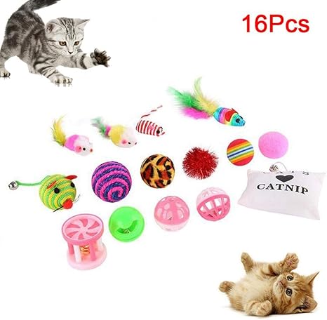 Asdf586io Accesorios Para Gatos 16 Piezas De Peluche Divertido Para Gato Con Forma De Pluma Y Campana Bola De Sisal Y Gato Juguete Para Masticar Color Al Azar Amazon Com Mx Mascotas