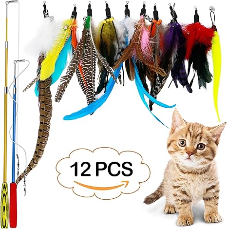 Llorenterm Juguetes Para Gatos Interactivos De Plumas De Peluche Retractil Con 2 Varillas 10 Accesorios Gusano Pajaros Plumas Para Gatos Amazon Es Productos Para Mascotas