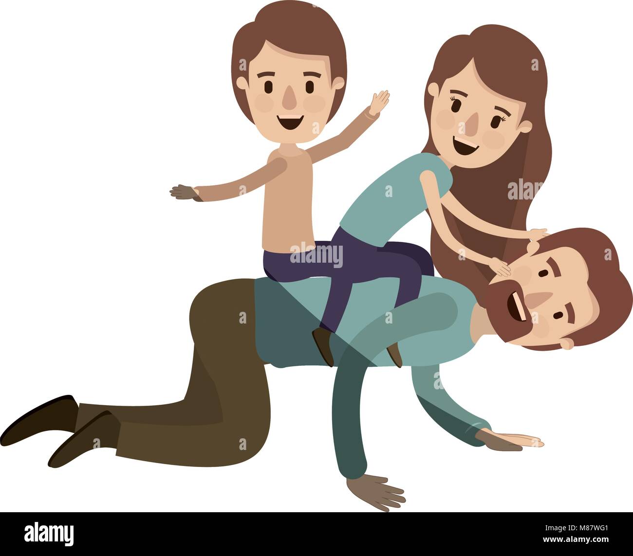 Luz De Color Sombreado Caricatura Barbudo Padre Con Ninos Jugando El Caballo En La Espalda Imagen Vector De Stock Alamy