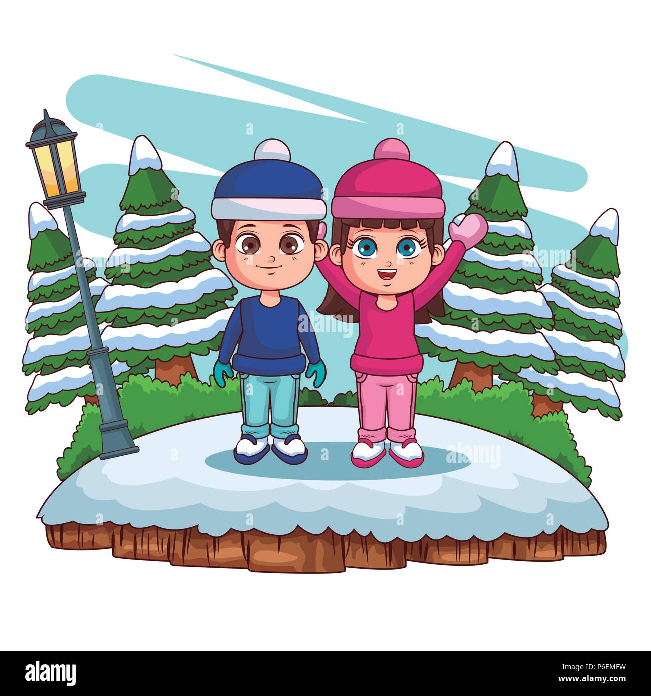 Cute Ninos Jugando En Invierno Caricaturas Ilustracion Vectorial Diseno Grafico Imagen Vector De Stock Alamy