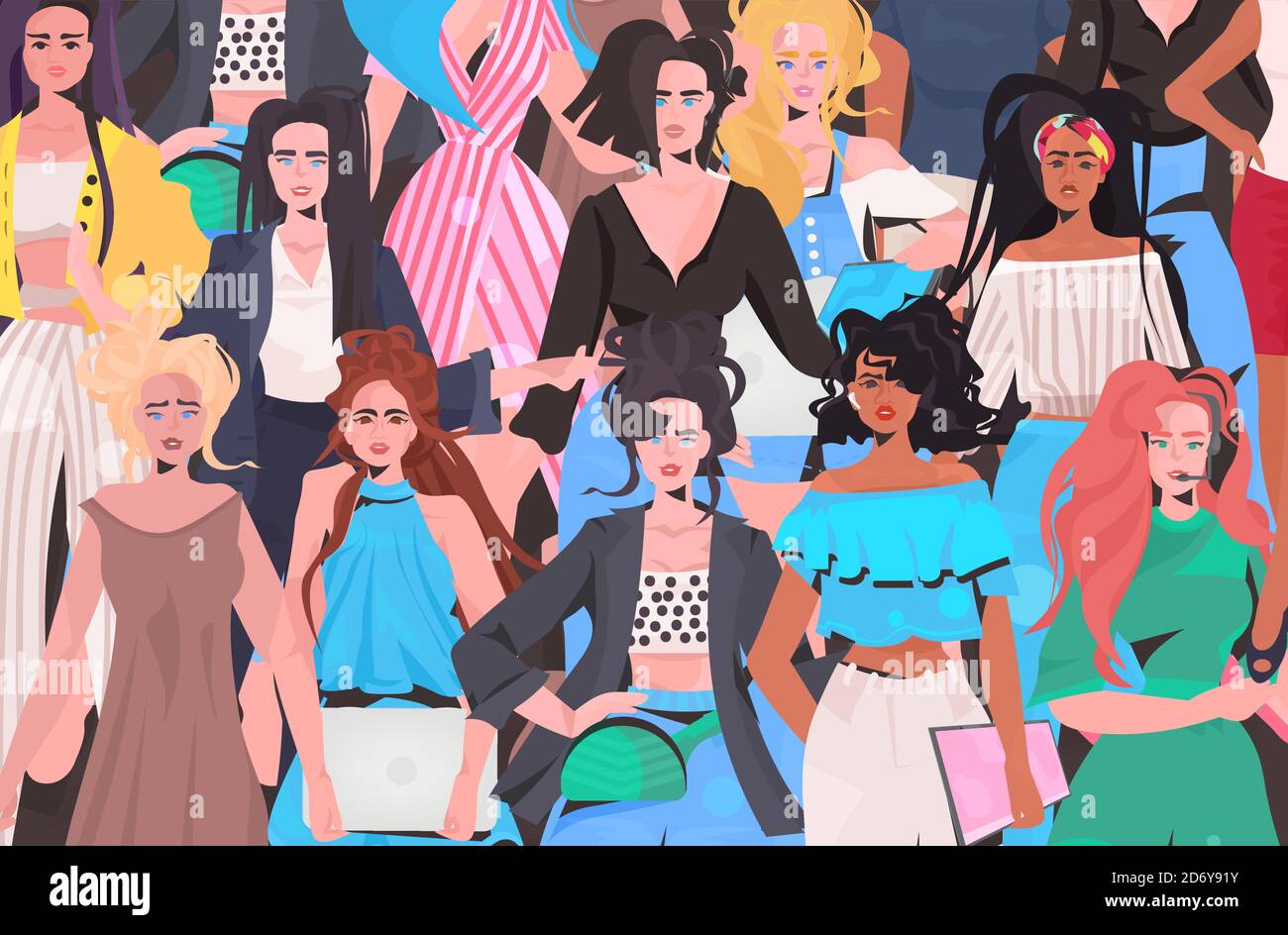 Las Mujeres De Raza Se Mezclan Con Las Ninas En Ropa Informal Dibujos Animados Femeninos Retrato Horizontal Vector Ilustracion Imagen Vector De Stock Alamy