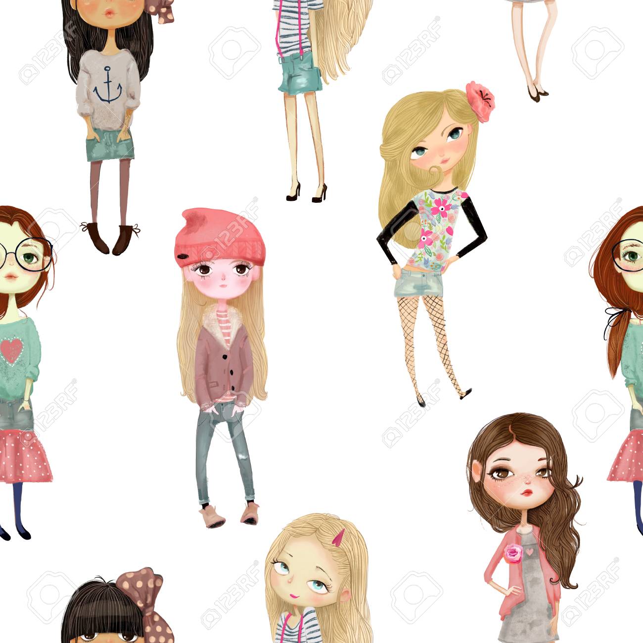 Patrones Sin Fisuras Con Ninas De Dibujos Animados Fotos Retratos Imagenes Y Fotografia De Archivo Libres De Derecho Image