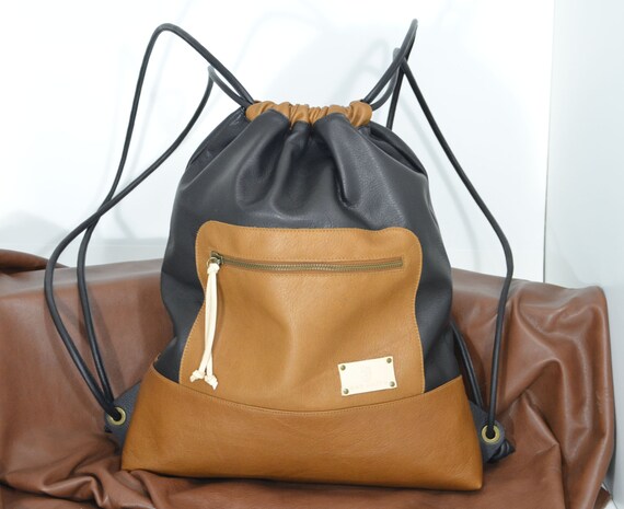 Mochila Cuero Negro Marronmochila Piel Marronmochila Saco Etsy