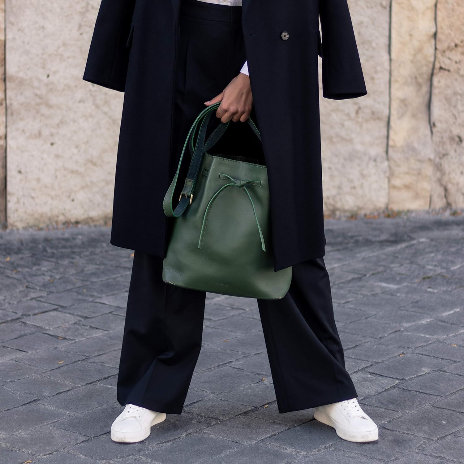 Bolso Saco Grace En Piel Mate Verde Y Negro