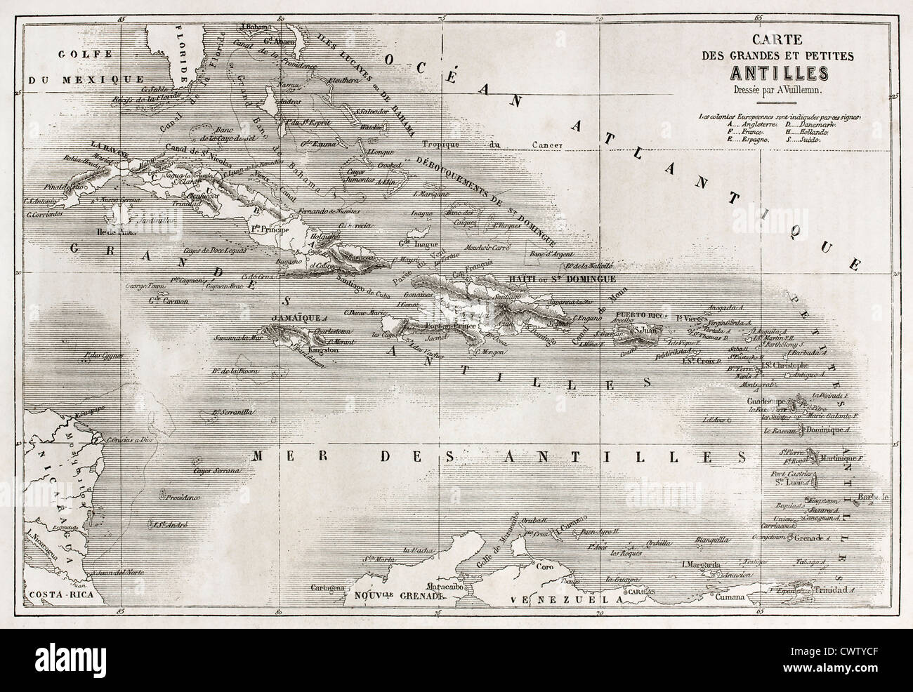 Old Map Of Greater Antilles In The Caribbean Sea Stock Photo Alamy