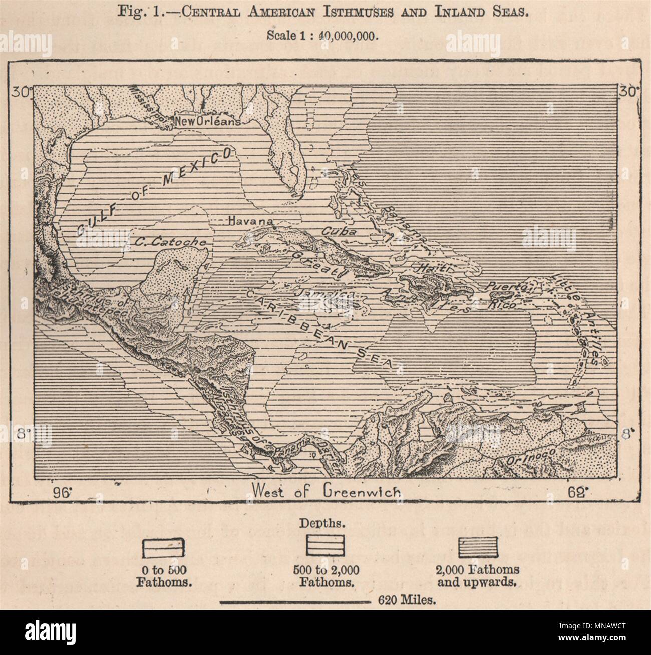 Central American Isthmuses And Inland Seas Caribbean 15 Old Antique Map Stock Photo Alamy