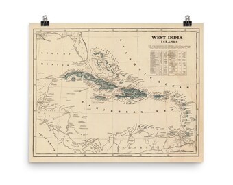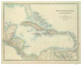 Choose which side to display Side One shows the entire island chain, from the Florida Keys to Venezuela on a physical relief map with shading for land heights and water depths Side Two starts with the same map and adds information blocks and flags for each country, along with colorful illustrations of fish found in Caribbean waters. Map of West Indies and the Caribbean Sea, 1800s Giclee Print 16 x 12 in other sizes $49 $2449 Add to Cart Petite Map of the Port of Havana Giclee Print 16 x in $4699 $2349 Add to Cart Grenada Giclee Print 16 x 12 in other sizes $49 $2449 Add to Cart Santo Domingo, Dominican Republic Map 12 x 16 in other sizes. This Caribbean Map, which is very similar to the Caribbean map used in one of the "Pirates of the Caribbean" movies starring Johnny Depp, arrived on time as promised by the seller It is actually a modern map with the current names of the numerous Caribbean islands and countries, but has the appearance of an oldstyle map on parchment.