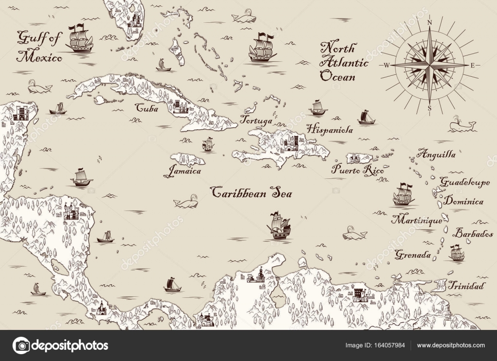 Download this Old Map Of The Caribbean Sea With Decorative And Fantasy Elements Pirate Sailing Ships Compass vector illustration now And search more of iStock's library of royaltyfree vector art that features Adventure graphics available for quick and easy download. Description This map shows Caribbean Sea countries, islands, cities, towns, roads. The Caribbean on a map created more than 70 years ago CategoryOld maps of the Caribbean or its subcategories the history of the Caribbean on a recently created map Category Caribbean Sea Gulf of Mexico shaded relief bathymetry land map 2png 1,024 × 664;.