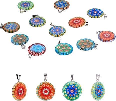 Pandahall Elite Colgantes Millefiori Con Diseno De Flores Y Lamparas De Cristal Colgantes Redondos Planos Abalorios Para Pendientes Colgantes Para Hacer Joyas Amazon Es Hogar