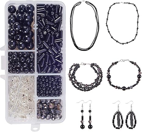 Amazon Com Sunnyclue Kit De Creacion De Joyeria Kit De Arranque De Abalorios Varios Abalorios Negros Colgantes Enganches Alambre De Abalorios Carcasa De Plastico Para Manualidades Collares Pulseras Pendientes Color Negro Home