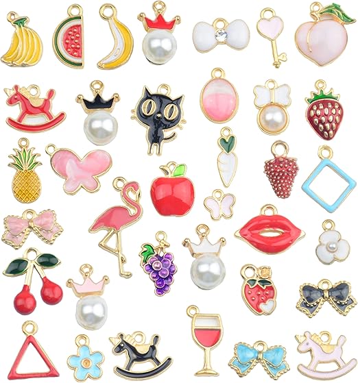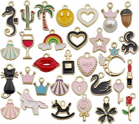 Amazon Com Abalorios Para Pulseras 1 Unidades Surtidos Chapados En Oro Esmaltados Con 1 Anillos De Salto Para Hacer Joyas Collares Pulseras Pendientes Llaveros Colgantes Para Bricolaje Home Kitchen