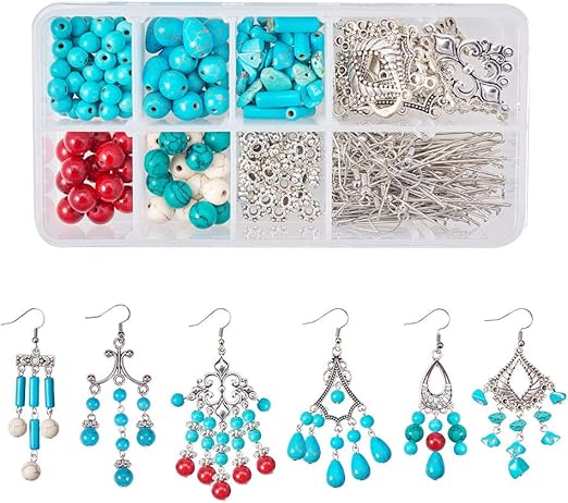 Amazon Com Sunnyclue 1 Caja De 330 Piezas Turquesa Candelabro Pendientes Kit De Iniciacion Para Hacer Bohemio Boho Joyas Suministros Diy Hacer 6 Pares Turquesa Candelabro Gota Pendientes Colgantes Plata Home Kitchen