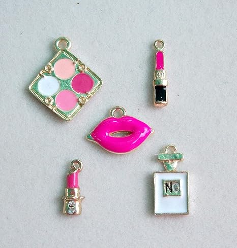 Amazon Com Set De 5 Abalorios De Pintalabios Y Maquillaje Para Mujer 2 Estilos De Pintalabios Labios Rosas Calientes Maquillaje Compacto Botella De Perfume Abalorios Para Bricolaje Arte Manualidades Y Costura