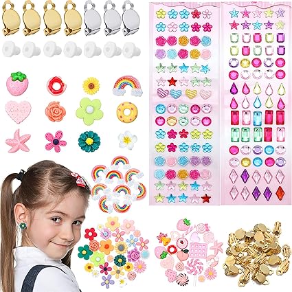 Amazon Com Kit De Creacion De Pendientes Con Clip Para Ninas 50 Piezas De Abalorios De Resina De Flores De Caramelo 60 Piezas De Bricolaje De Princesa 150 Piezas De Joyas Para Hacer