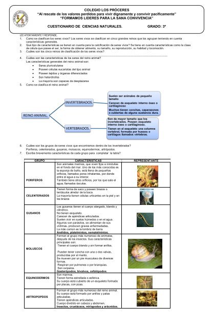 Ciencias Naturales Reino Animal Vertebrados E Invertebrados 4 10 Pearltrees