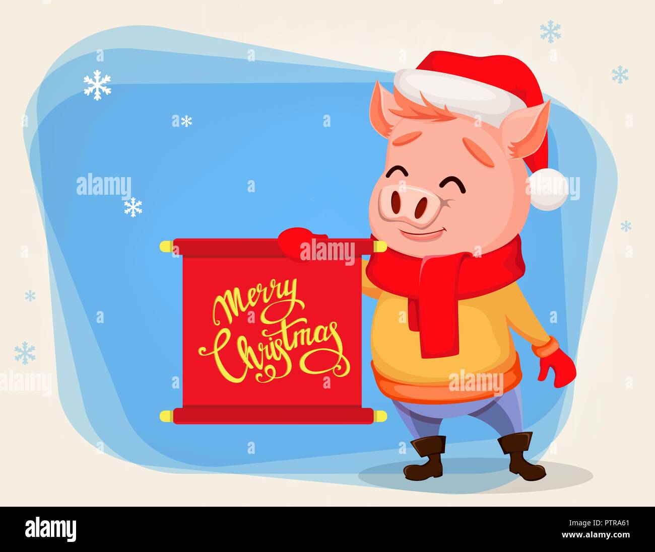 Feliz Navidad Tarjeta De Felicitacion Con Cerdo Lindo Vestidos De Santa Claus Sombrero Y Bufanda Personaje De Caricatura Divertida Alegre Celebracion Desplacese Con Felicitaciones V Imagen Vector De Stock Alamy