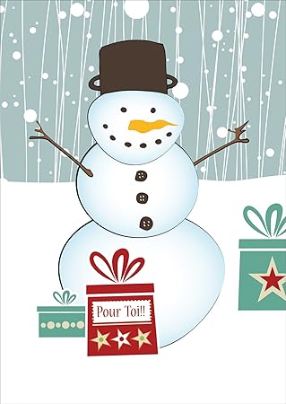 Tarjeta De Navidad Divertida Tarjeta De Regalo Tarjeta De Felicitacion Para Navidad Con Un Muneco De Nieve Feliz Entre Regalos Pour Toi Con Sobre Amazon Es Oficina Y Papeleria
