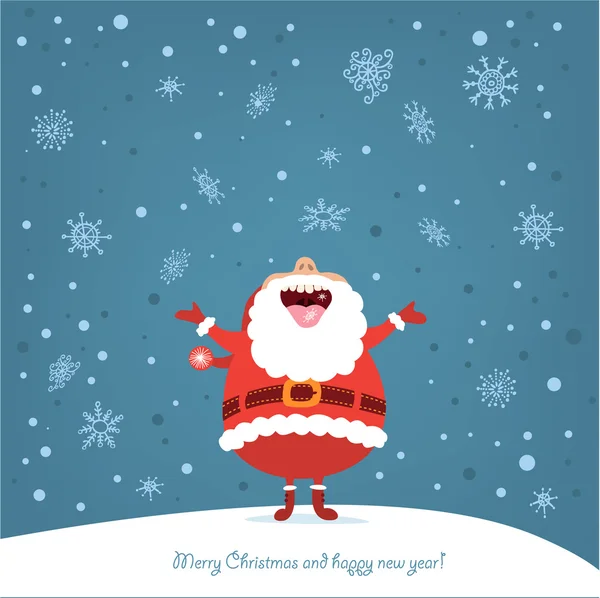 Feliz Navidad Y Feliz Ano Nuevo Tarjeta De Felicitacion Con Santa Claus Divertida En Fondo Azul Ilustracion Del Vector Ilustracion De Azul Fondo