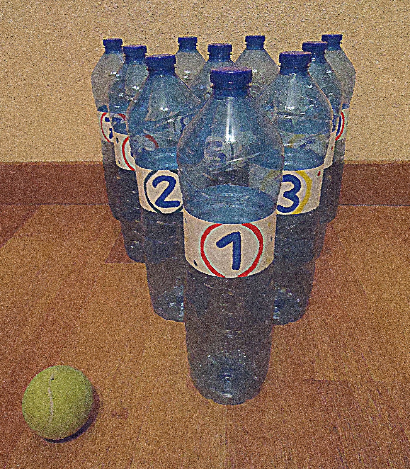 Cómo hacer un juego de bolos con botellas recicladas Lo primero luego de reunir tus botellas recicladas para hacer un juego de bolos, es limpiar las mismas a fondo y echar dentro de un bol un poco de pintura y con la arena, haciendo para que se mezcle bien la pintura O bien puedes comprar arena sintética que venden en tiendas de. Podemos pintar cada botella de un color, o agruparlas en tres las cuatro del fondo de un color, de otro las tres siguientes, y las tres primeras (con forma de pico) de un color diferente Otra idea dibujarles con pintura la cinta que bordea el cuello de nuestros bolos caseros, como vemos en el dibujo. Aunque esto pueda ser hecho con agua o arena, yo he usado yeso, ya que así, podemos colocar los bolos del revés y que así ganen el efecto de perdida de equilibrio característico de los bolos Materiales necesarios 10 botellas de plástico de 1 litro (o similar), 5 kilos de yeso en polvo (se puede usar cemento, pero considero que el color.