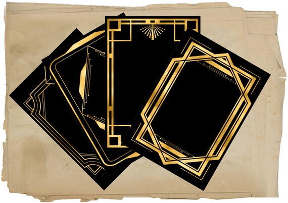 Gold Art Deco Frame Prints On Black Background Art Deco Etsy