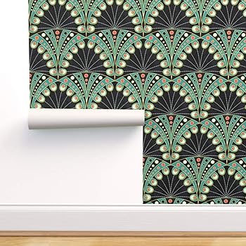 Spoonflower Peel And Stick Removable Wallpaper Peacock Feather Art Deco Art Nouveau Geometric Boho Bohemian Bird Green Black Elegance Print Self Adhesive Wallpaper 12in X 24in Test Swatch Amazon Com