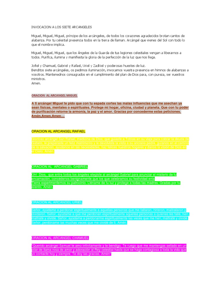 Invocacion A Los 7 Arcangeles